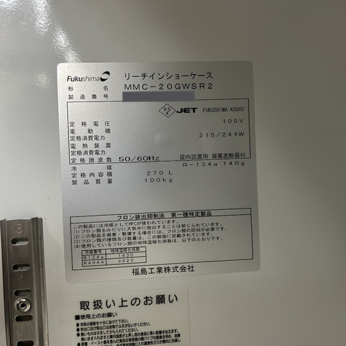 冷蔵リーチインショーケース スイング扉 フクシマガリレイ(福島工業) MMC-20GWSR2 幅600×奥行590×高さ1810 【新宿店在庫】