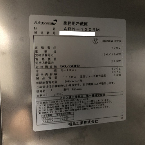 メーカー:フクシマガリレイ(福島工業)