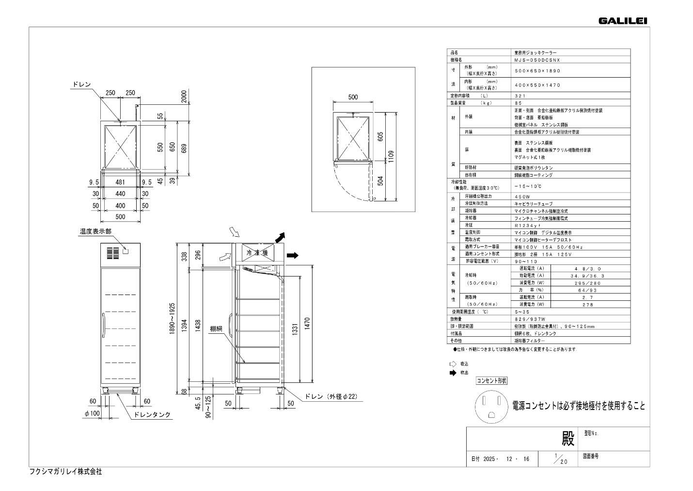 【MJS-050DCSN6】【フクシマガリレイ】【ジョッキクーラー】ビールジョッキクーラー(旧型式:MJS-050DCSN5)幅500×奥行650×高さ1890【ジョッキ冷却専用冷蔵庫】