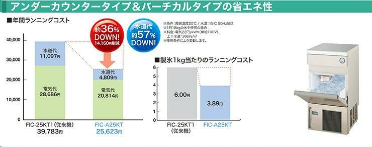製氷1kgあたりのランニングコスト(電気代・水道代)がナント3.89円!(FIC-A25KTの場合)