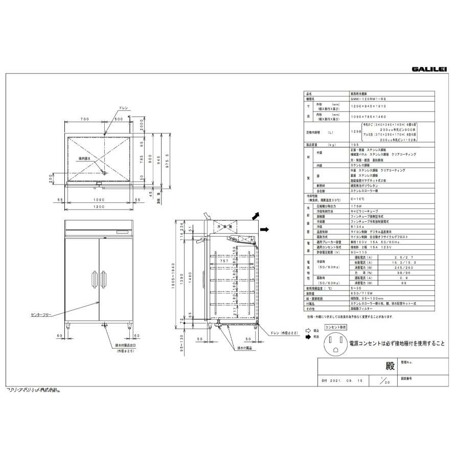 【フクシマガリレイ】縦型牛乳冷蔵庫 GMW-120RM-RS(旧型式:UMW-120RM6-RS) 幅1200×奥行945×高さ1910