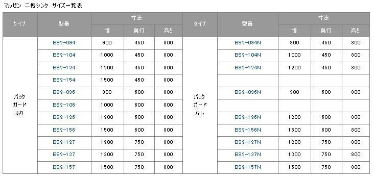マルゼン 引き出し付き調理台 サイズ一覧表