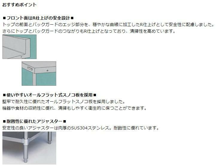 機器や食材の収納性に優れ、清掃もしやすく衛生的に保つことができます。