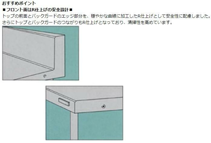 トップの前面とバックガードのエッジ部分を、穏やかな曲線に加工したR仕上げとして安全性に配慮しました。