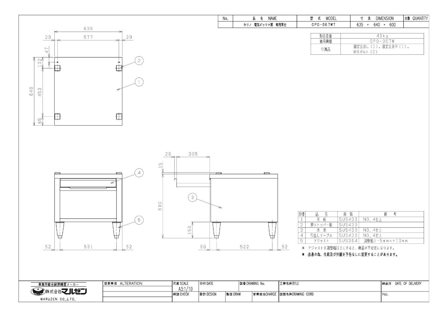 商品名:ピッツァ釜専用架台 CPO-067WT