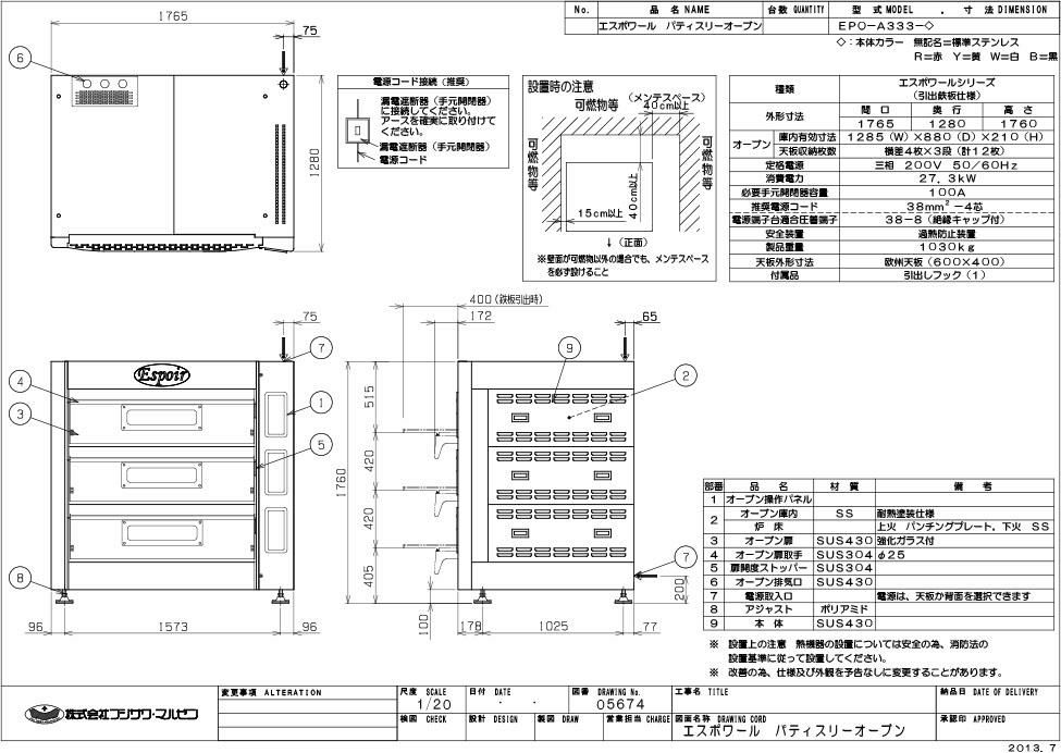 【マルゼン】パティスリーオーブン エスポワール EPO-A333 幅1765×奥行1280×高さ1760 三相200V