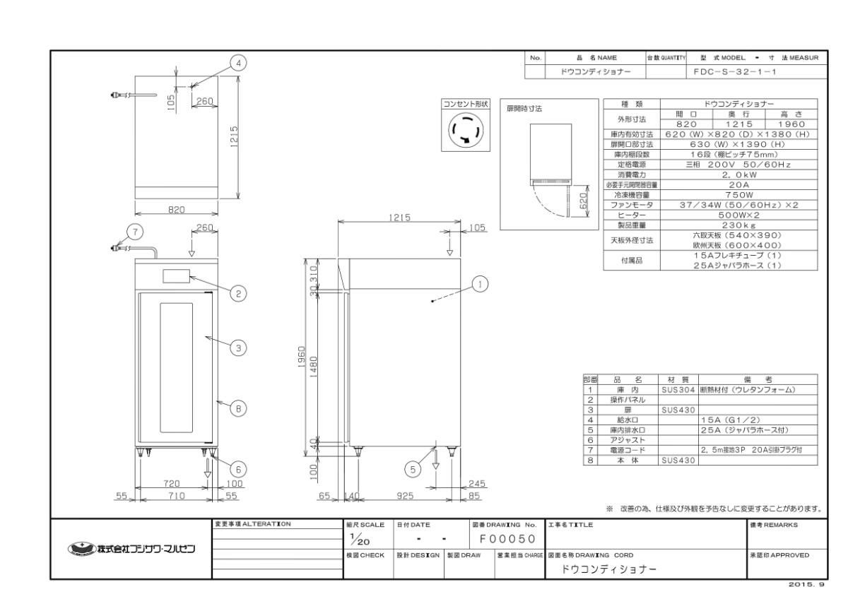 【マルゼン】ドウコンディショナー 空水冷仕様 FDC-S-32-1-1 幅820×奥行1215×高さ1960 三相200V