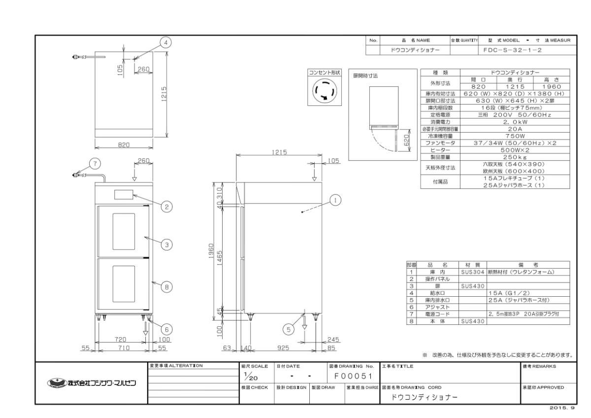 【マルゼン】ドウコンディショナー 空冷仕様 FDC-S-32-1-2 幅820×奥行1215×高さ1960 三相200V