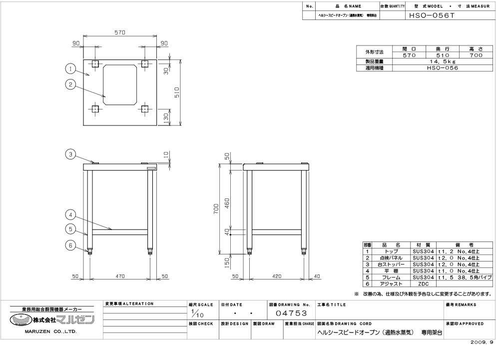 HSO-056T 【マルゼン】ヘルシースピードオーブン専用架台 幅570×奥行510×高さ700mm