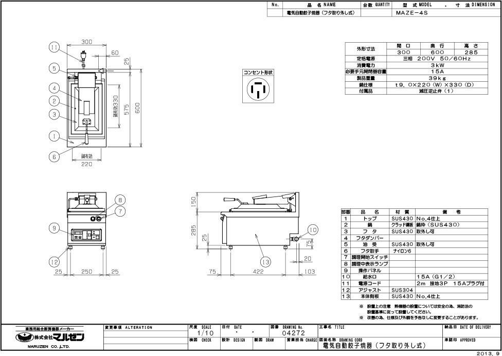 【マルゼン】電気自動餃子焼器 MAZE-4S 幅300×奥行600×高さ285mm
