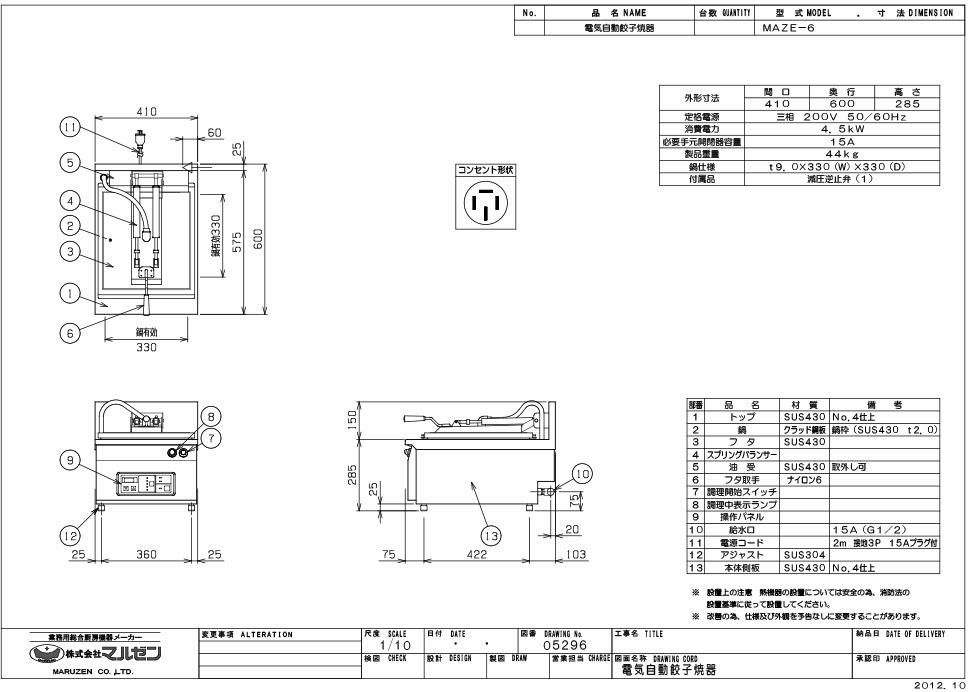 【マルゼン】電気自動餃子焼器 MAZE-6 幅410×奥行600×高さ285mm