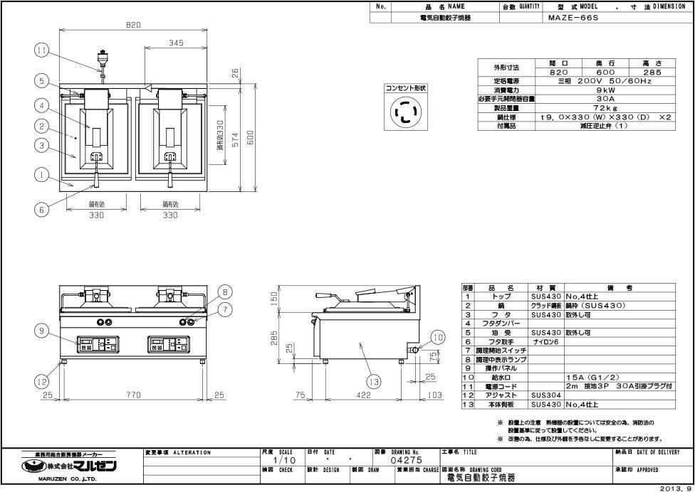【マルゼン】電気自動餃子焼器 MAZE-66S 幅820×奥行600×高さ285mm