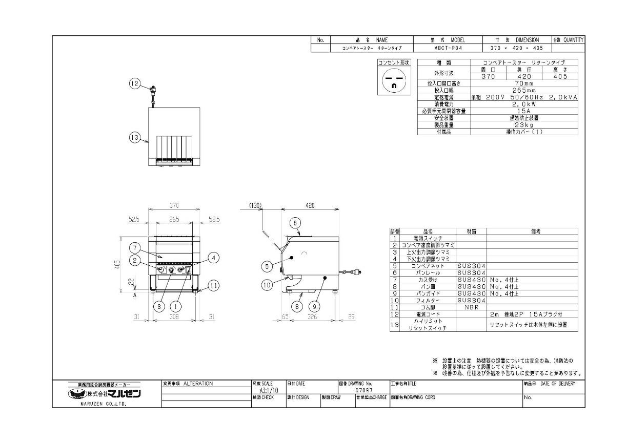 【マルゼン】コンベアトースター リターンタイプ MBCT-R34 幅370×奥行420×高さ405mm