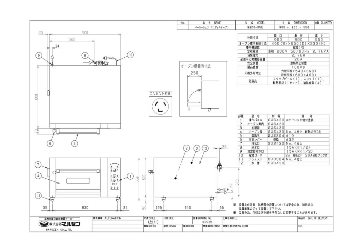 商品名: ミニ・デッキオーブン W900×D800×H550