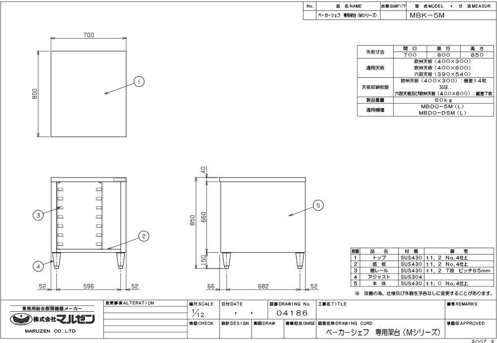 【マルゼン】ベーカリーオーブン専用架台 MBK-5M 幅700×奥行800×高さ850