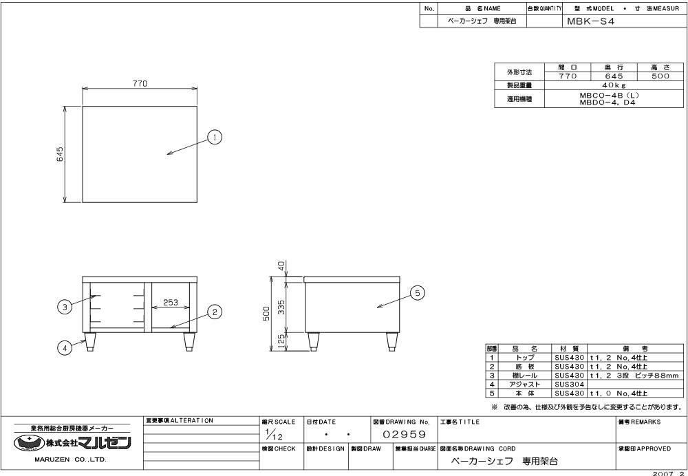 【マルゼン】ベーカリーオーブン専用架台 MBK-S4 幅770×奥行645×高さ500