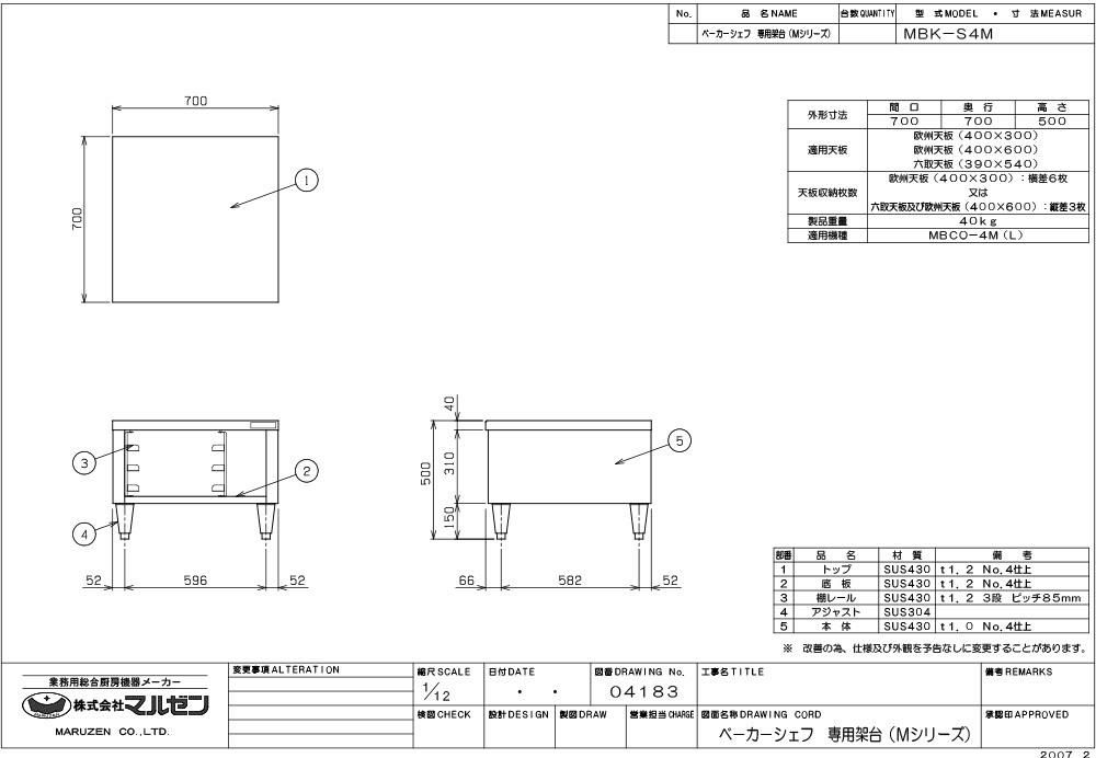 【マルゼン】ベーカリーオーブン専用架台 MBK-S4M 幅700×奥行700×高さ500
