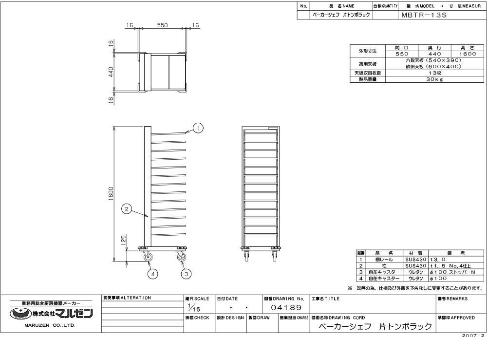 【3月末までのお届け分限定価格】【マルゼン】トンボラック MBTR-13S 幅550×奥行440×高さ1600mm