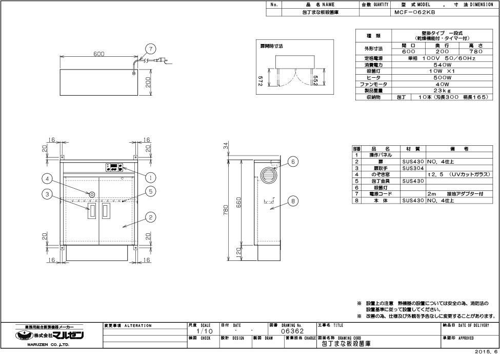 【マルゼン】包丁殺菌庫 MCF-062KB 幅600×奥行200×高さ780 単相100V 50/60Hz