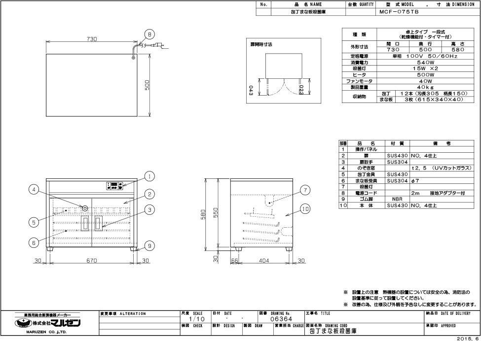 商品名:包丁まな板殺菌庫 MCF-075TB