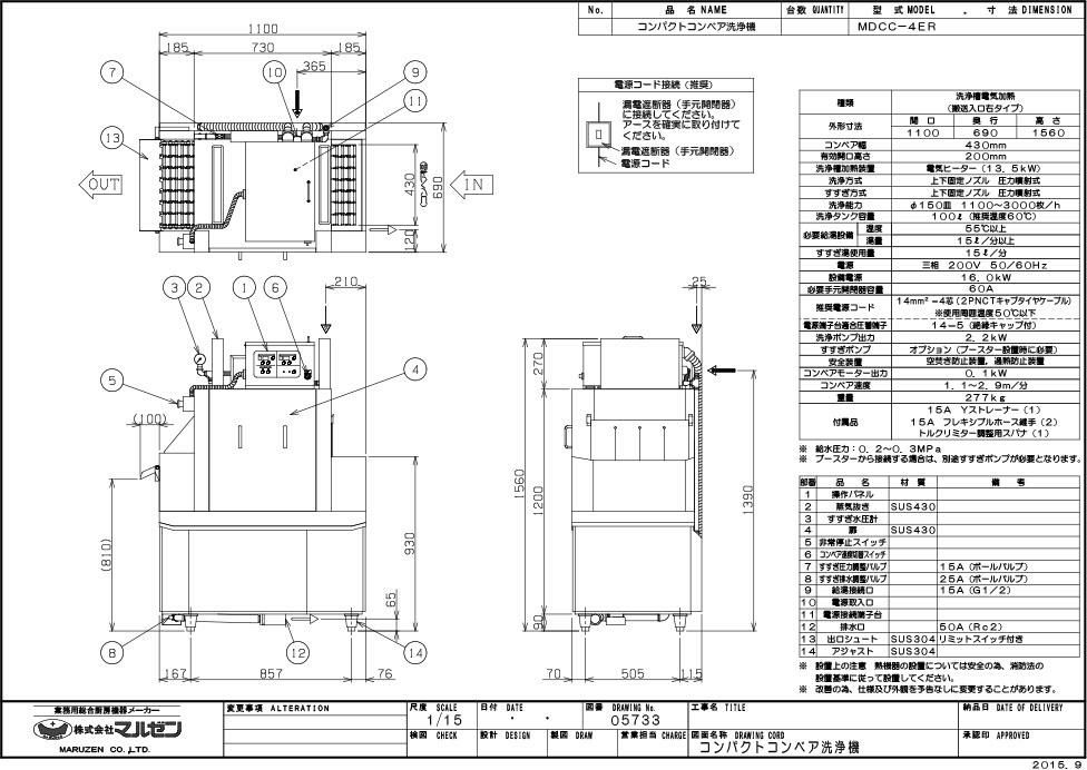 MDCC-4ER 【マルゼン】コンパクトコンベア洗浄機 幅1100×奥行690×高さ1560 三相200V
