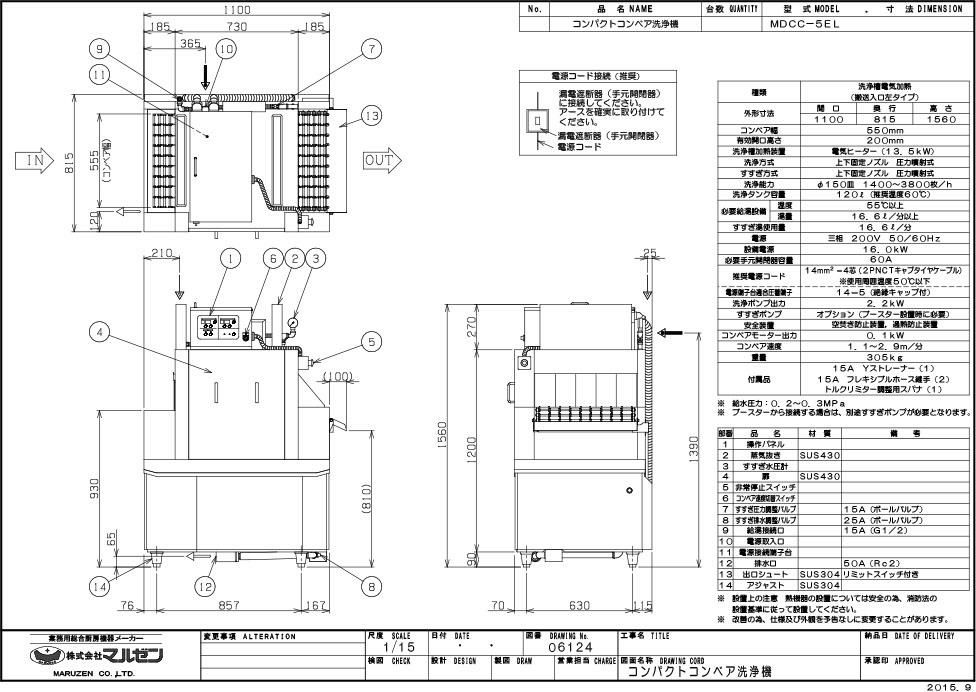 MDCC-5EL 【マルゼン】コンパクトコンベア洗浄機 幅1100×奥行815×高さ1560 三相200V