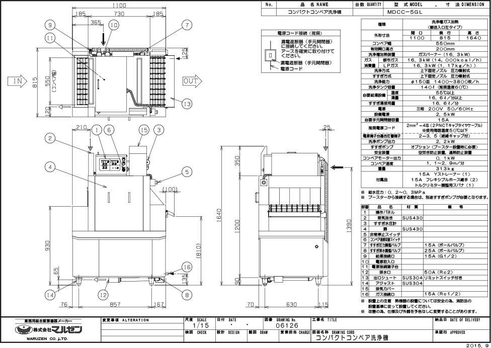 MDCC-5GL 【マルゼン】コンパクトコンベア洗浄機 幅1100×奥行815×高さ1560 三相200V
