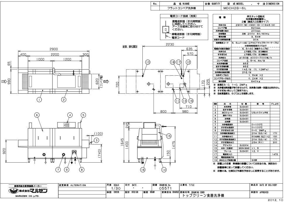 MDCH2B-6L 【マルゼン】フラットコンベア洗浄機 幅2900×奥行990×高さ1645 三相200V 50/60Hz