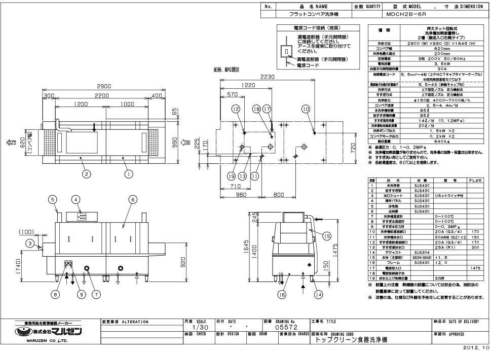 MDCH2B-6R 【マルゼン】フラットコンベア洗浄機 幅2900×奥行990×高さ1645 三相200V 50/60Hz