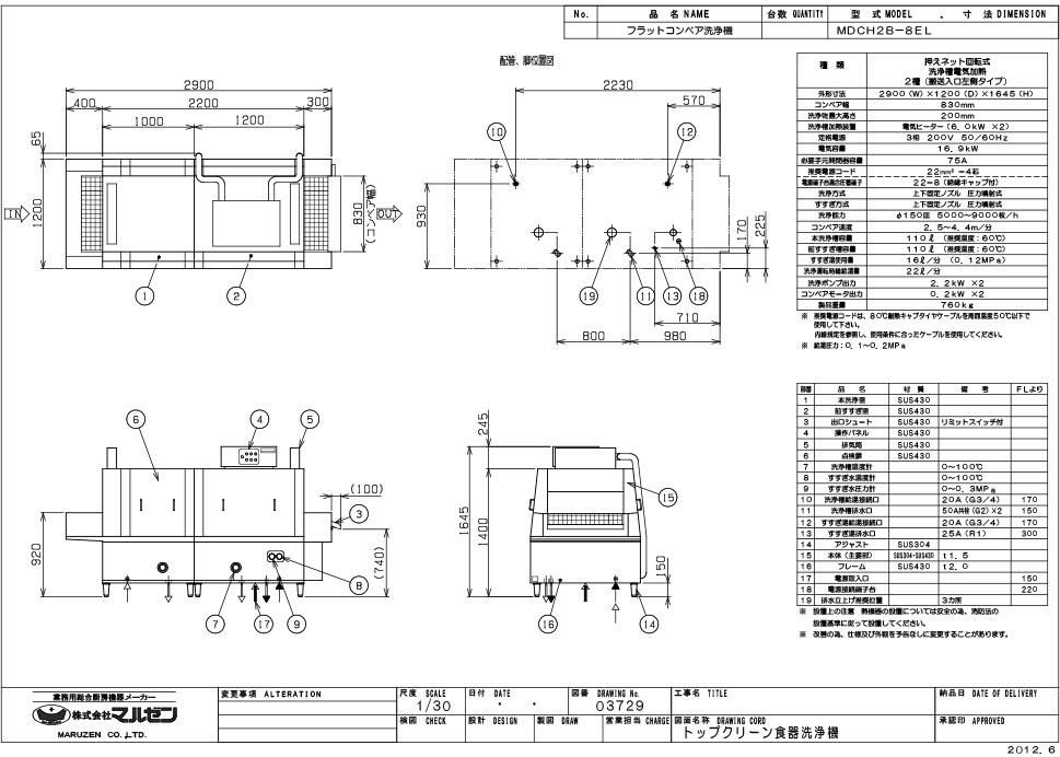 MDCH2B-8EL 【マルゼン】フラットコンベア洗浄機 幅2900×奥行1200×高さ1645 三相200V 50/60Hz