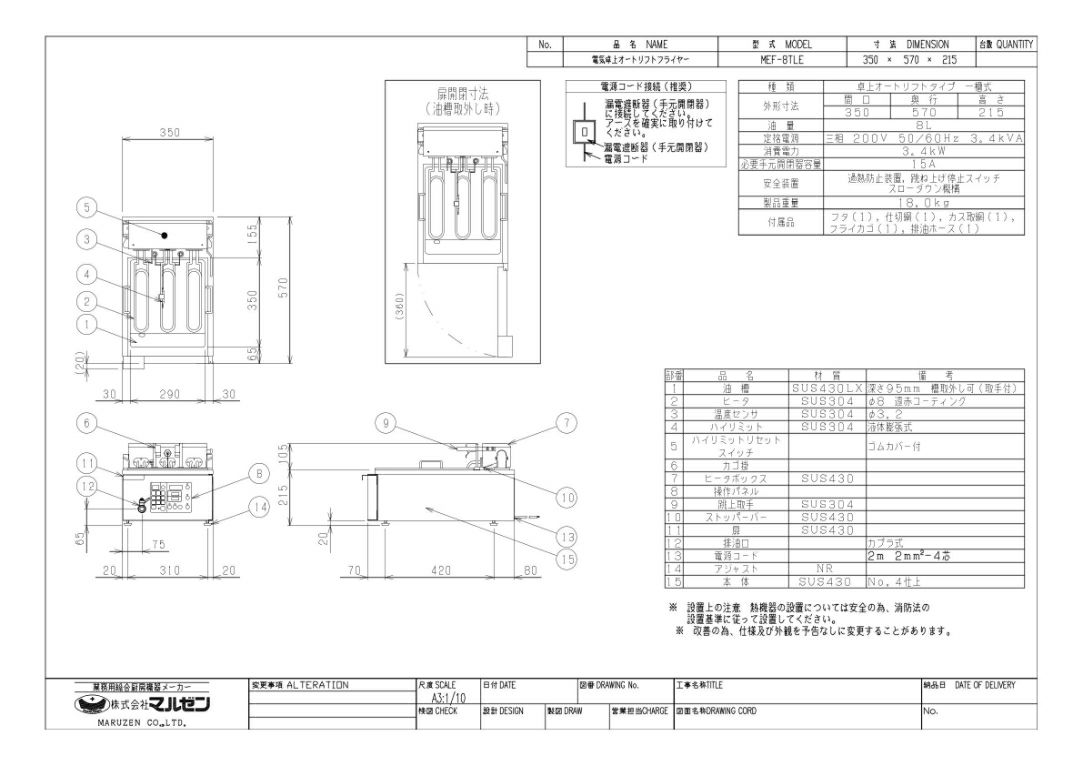 商品名:電気オートリフトフライヤー W350×D570×H215