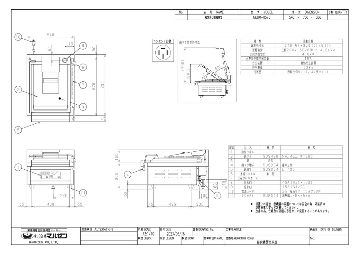 商品名:電気多目的焼物器 MEGM-057C
