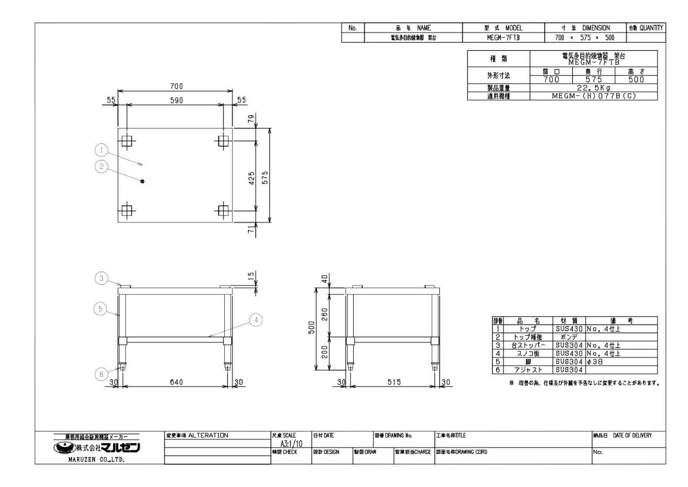 【3月末までのお届け分限定価格】【マルゼン】電気多目的焼物器専用架台 MEGM-7FTB 幅700×奥行575×高さ500mm