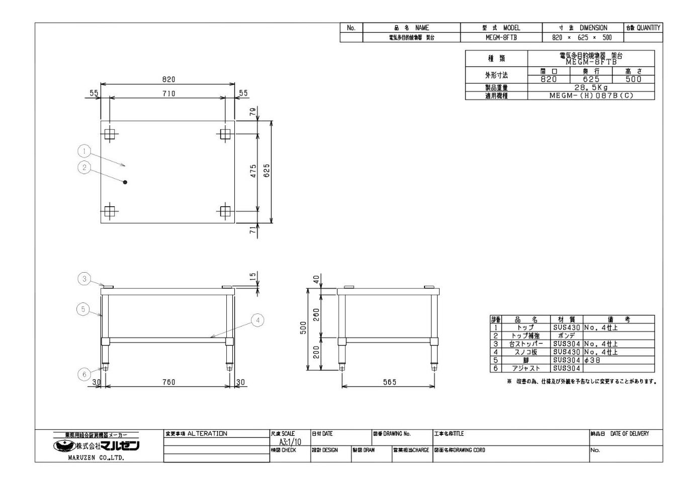 【3月末までのお届け分限定価格】【マルゼン】電気多目的焼物器専用架台 MEGM-8FTB 幅820×奥行625×高さ500mm
