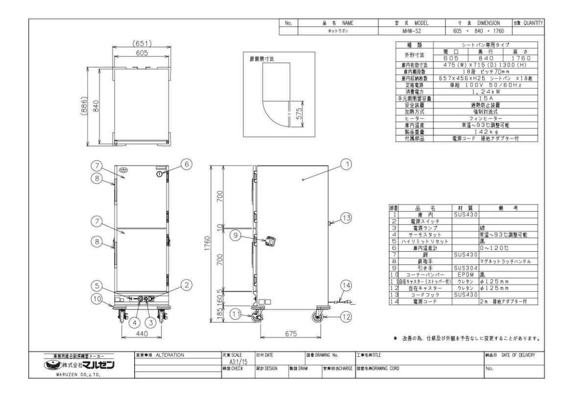 外形寸法:幅605×奥行840×高さ1760(mm)