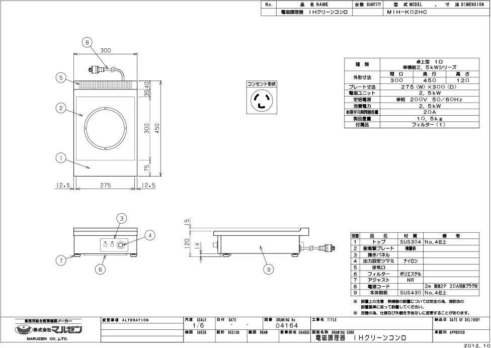 MIH-K02HC 【マルゼン】IHクリーンコンロ 幅300×奥行450×高さ120 単相200V 50/60Hz