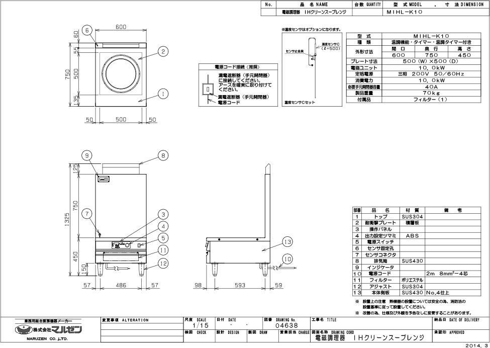【マルゼン】IHスープレンジ MIHL-K10 幅600×奥行750×高さ450 三相200V
