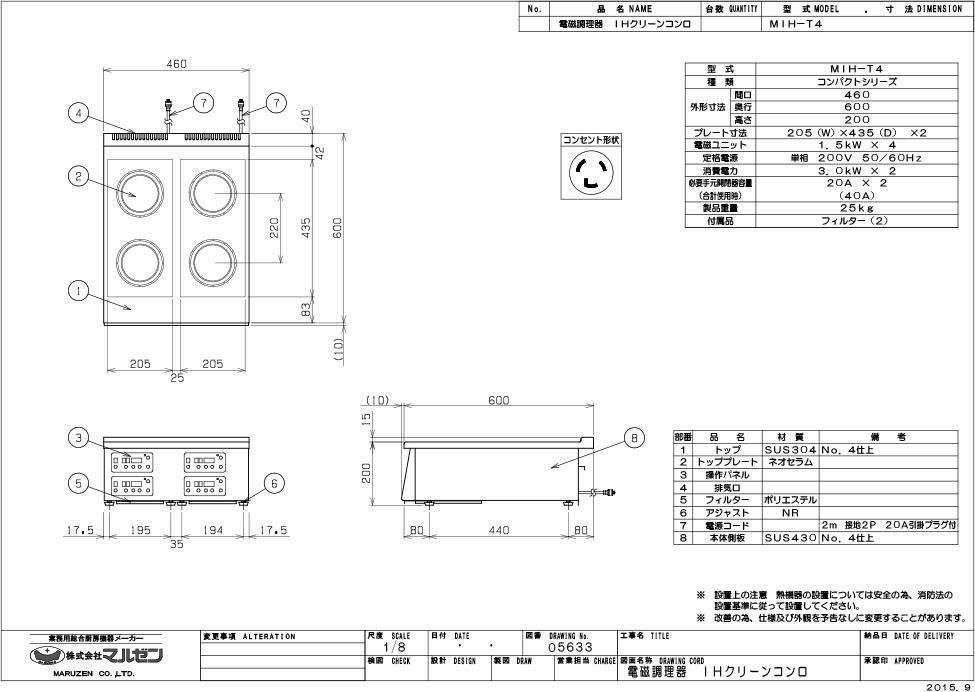 MIH-T4 【マルゼン】IHクリーンコンロ コンパクトタイプ 幅460×奥行600×高さ200 単相200V