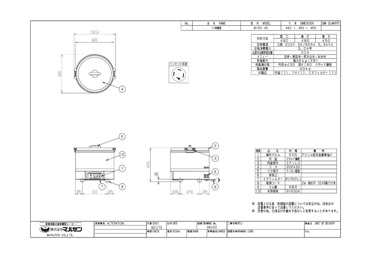 MIRC-4D 【マルゼン】IH炊飯器 幅480×奥行480×高さ450mm