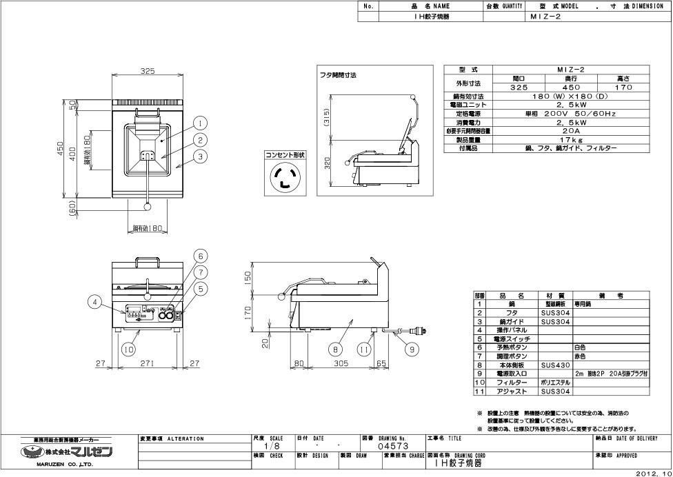 【マルゼン】IH餃子焼器 MIZ-2 幅325×奥行450×高さ170mm
