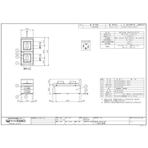 【マルゼン】 IH餃子焼器 MIZ-2 幅325×奥行750×高さ250mm