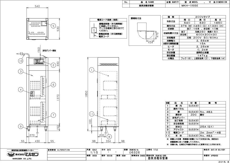 【マルゼン】器具消毒保管庫 MKH-055E 幅540×奥行530×高さ1850 三相200V