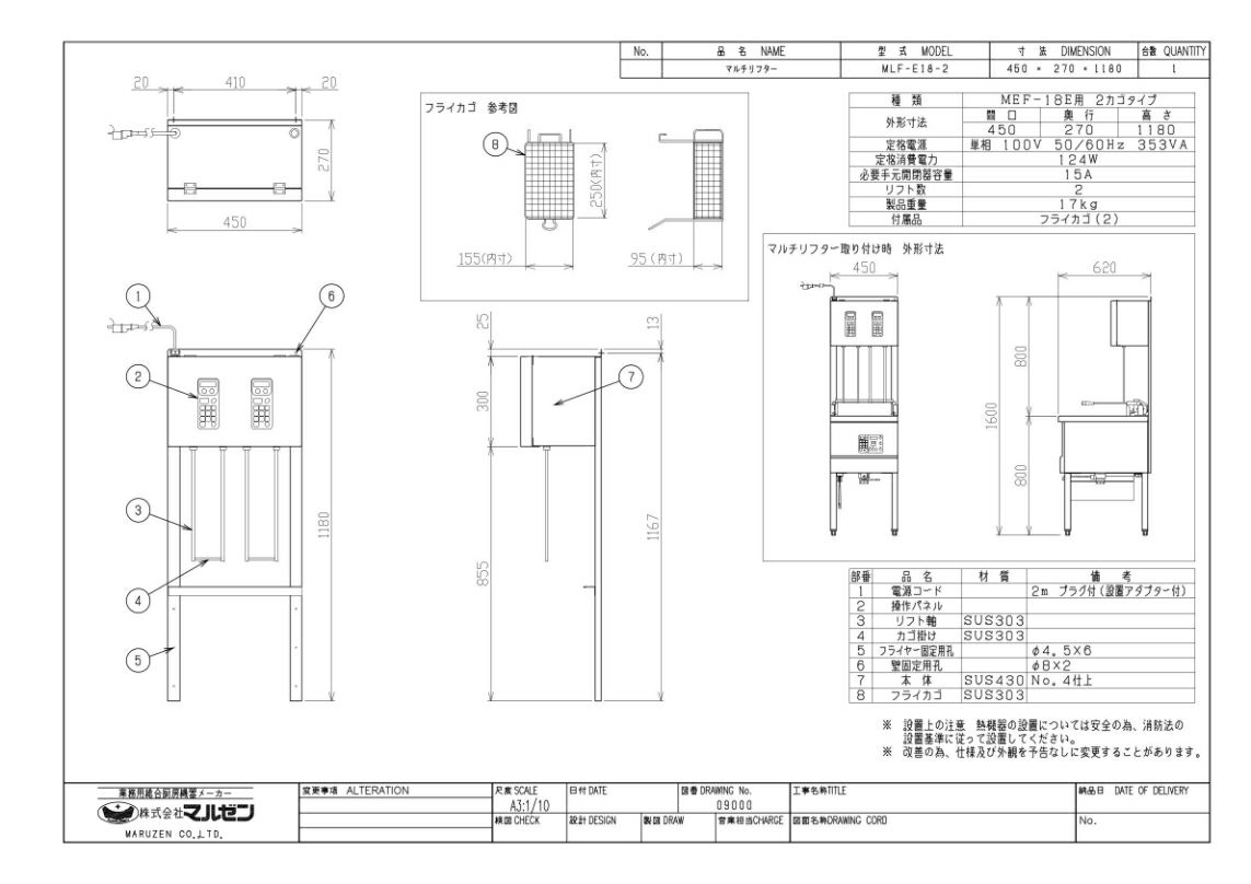 MLF-E18-2 【マルゼン】 マルチリフター MEF-18E用 2カゴタイプ 単相100V 幅450×奥行270×高さ1180