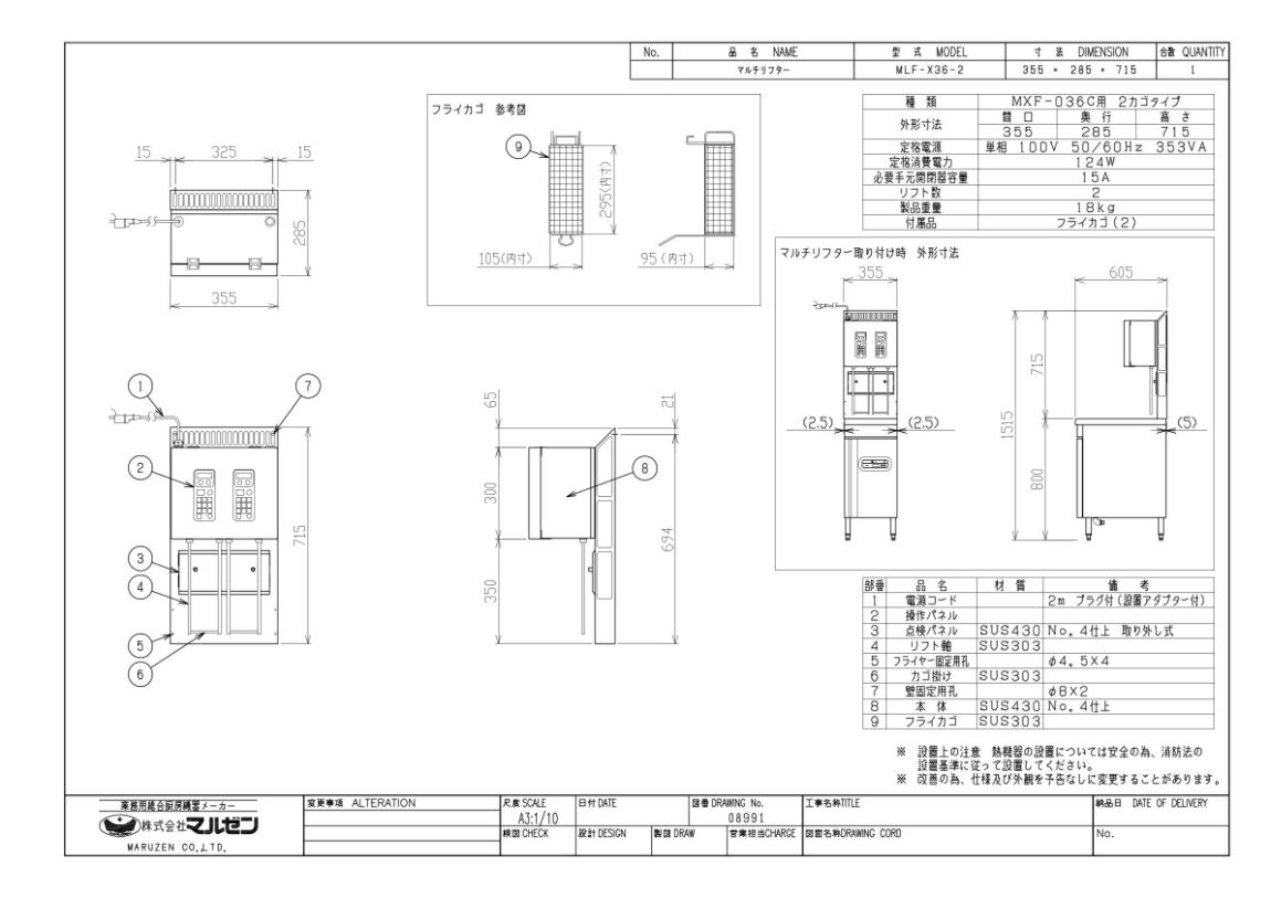 MLF-X36-2 【マルゼン】 マルチリフター MXF-036C用 2カゴタイプ 単相100V 幅355×奥行285×高さ715