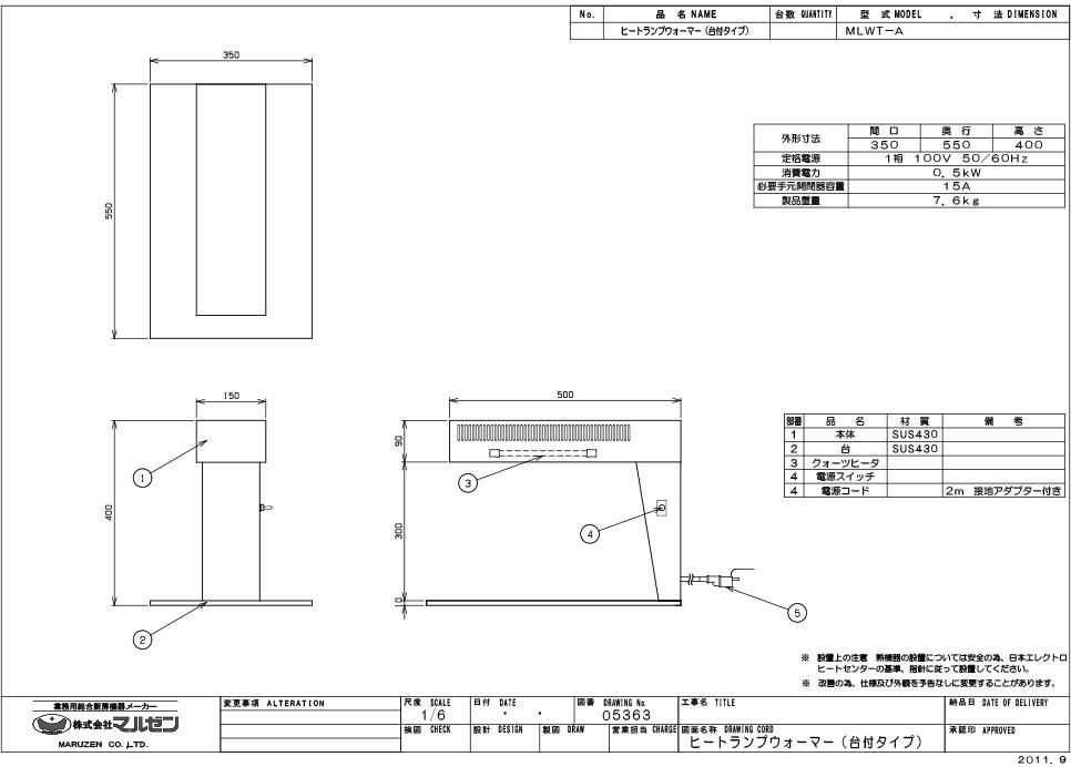 【マルゼン】ヒートランプウォーマー MLWT-A 幅350×奥行550×高さ400mm