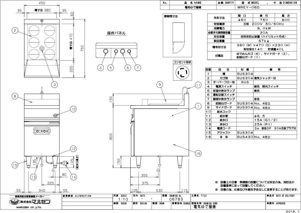 【マルゼン】ゆで麺機 MREY-06D 幅450×奥行750×高さ800mm