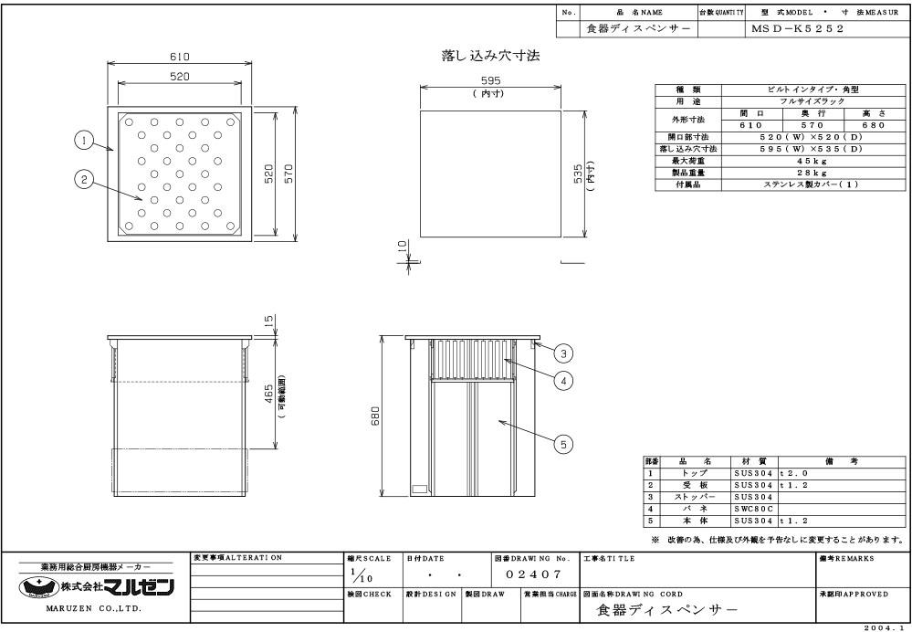 【マルゼン】食器ディスペンサー MSD-K5252 幅610×奥行570×高さ680