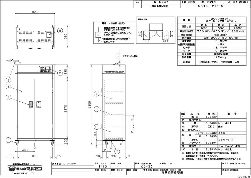 【マルゼン】食器消毒保管庫 200V・標準タイプ 奥行1列 片面扉 MSH10-21SEN 幅920×奥行530×高さ1850