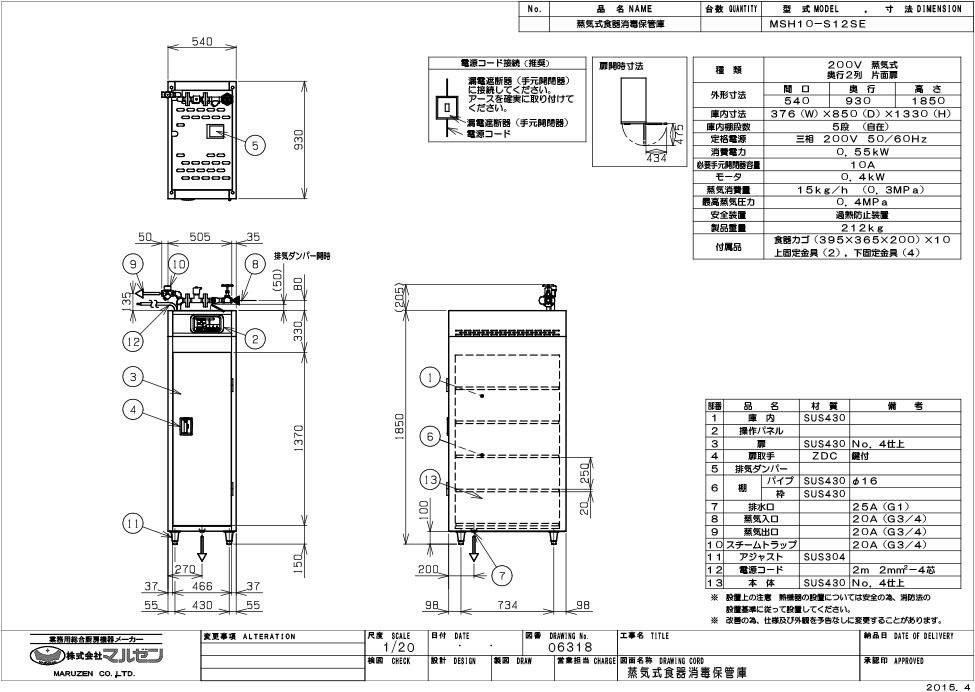 商品名:蒸気食器消毒保管庫 MSH10-S12SE