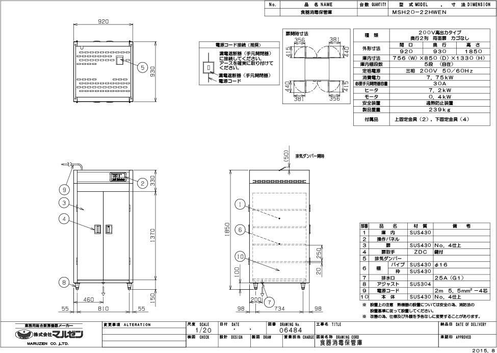 【マルゼン】食器消毒保管庫 200V・高出力タイプ 奥行2列 両面扉 MSH20-22HWEN 幅920×奥行930×高さ1850